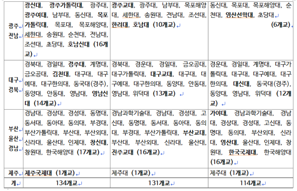 수능 5~9등급은 기타 지방 4년제 대학과 2,3년제 대학으로 보면 되겠습니다.