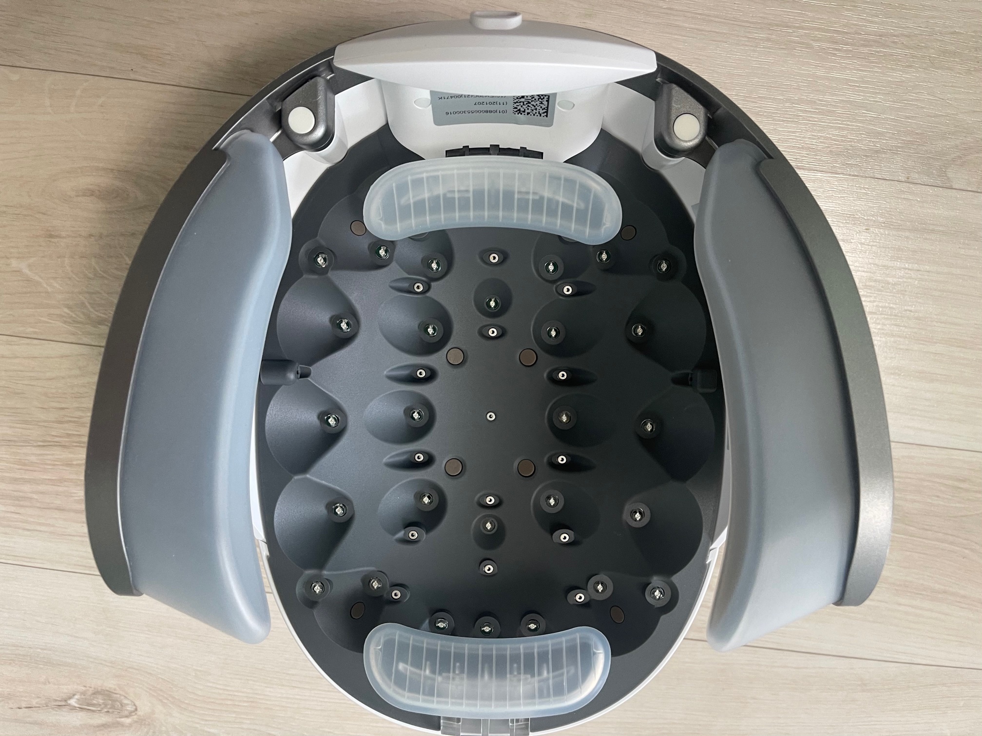 착용후에 흘러내리는 것은 아닐까 했지만 받침대 같은 것이 옆에 있어 그대로 장착이 됩니다. 착용하고 있는 동안 별다른 느낌은 없습니다. 그냥 책을 보던지 TV를 보던지 하면 되며 고개를 떨구거나 할 일만 없으면 됩니다. 시간은 20분에서 25분 정도인데 종료 5분전에는 종료 시간도 미리 알려주어 끝나는 시간도 알 수 있는 편리함도 갖추었습니다. 사용 중 뜨겁다거나 자극이 있다거나 하는 느낌은 받지 못했는데 사용자의 느낌이 다를 수는 있겠습니다. 2일에 한번 사용하면 되니 사용을 시작했다면 잊지 않고 꾸준히 사용하는 것이 중요하겠습니다. 젖은 머리에 사용할 경우 감전될 수도 있으니 사용하면 안되겠습니다.