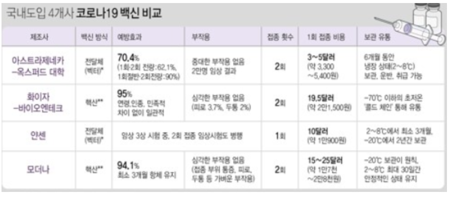 코로나 백신 종류, 횟수, 비용