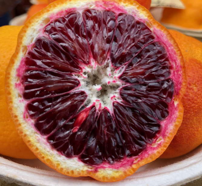 모로 오렌지(Moro Orange)라눈 과일이 바로 그것으로 비교적 생소한 이름의 과일이지만 몸에 좋은 효능이 많은 식품입니다. 모로 오렌지(Moro Orange)는 블러드 오렌지의 한 종류입니다. 블러드 오렌지는 보통 외관에서는 일반 오렌지와 비슷하지만, 산딸기나 체리 같은 붉은색 빛깔이 깃들어 있는 과육을 가지고 있는 것이 특징입니다. 모로 오렌지는 그 중에서 가장 어두운 붉은색 과육을 가지고 있으며, 이탈리아의 시칠리아 지역에서 주로 생산됩니다. 모로 오렌지는 상큼하면서도 산미가 적고, 베리류의 향미가 도는 과일로 각종 음료, 샐러드, 디저트에 활용됩니다. 또한 블러드 오렌지류는 일반 오렌지에 비해 높은 항산화 성분인 안토시아닌을 함유하고 있어 건강에 좋다고 알려져 있습니다.