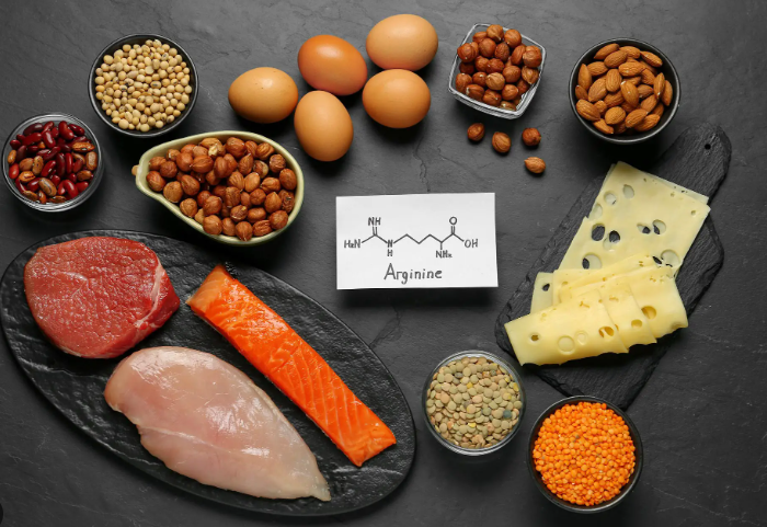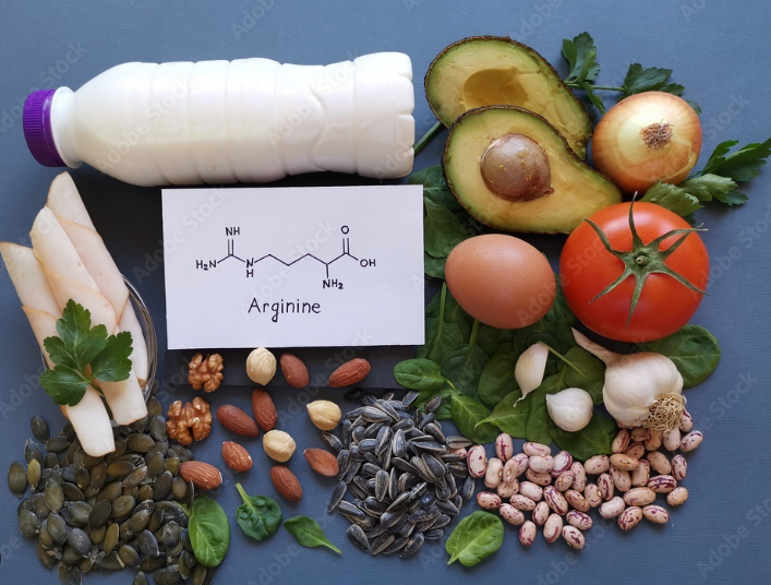 아르기닌이 많이 함유된 최고의 음식은 발효 요구르트, 생 치즈와 같은 유제품, 목초를 먹여 키운 쇠고기 또는 고기, 목초지에서 자란 가금류(칠면조와 닭고기 포함), 간 및 내장육, 자연산 물고기, 참깨, 호박씨, 해바라기 씨, 해초와 바다 야채, 브라질 너츠, 호두, 아몬드, 코코넛 등이 좋습니다.