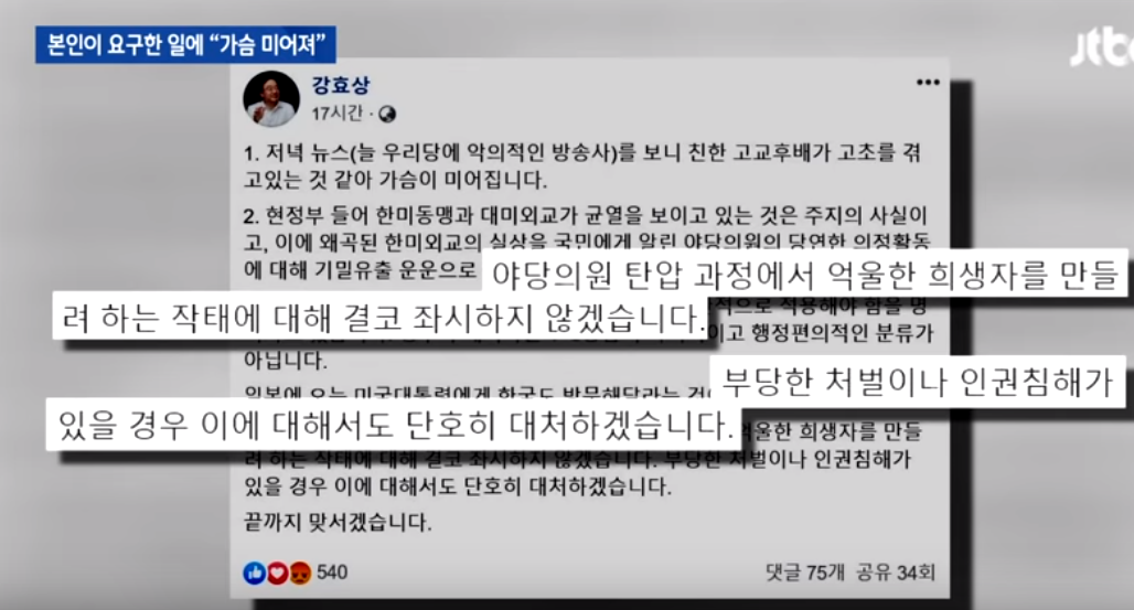 강효상 의원은 기자가 아니라 국회의원입니다. 본인의 현재 위치를 망각했는지는 모르겠지만 해서는 안될 무모한 기밀누설 행위를 저지른 데 대하여 지금이라도 용서를 구하고 그에 맞는 처벌을 받는 것 말고는 다른 길이 없을 것 같습니다.