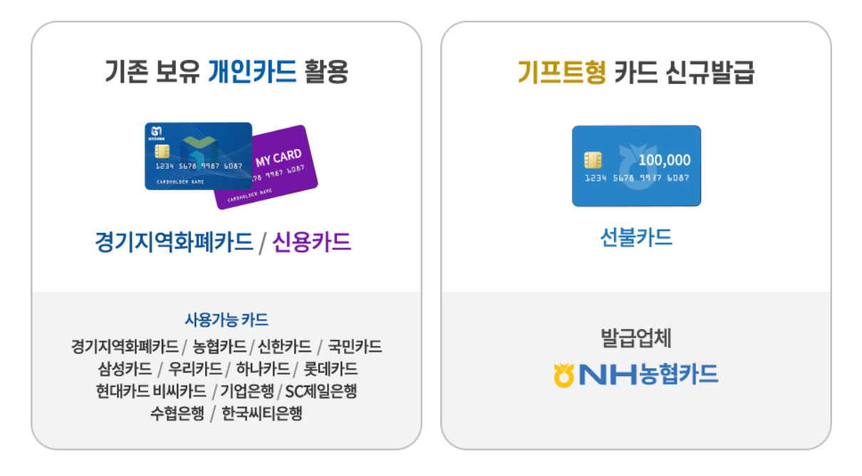 재난기본소득의 개념으로 지원될 경기도의 재난긴급생활비는 관내에 거주하는 전 도민에게 지원될 예정입니다. 지급 내용은 3월 24일 24시 이전부터 신청일까지 경기도내 주민 등록이 되어 있는 내국인 대상입니다. 외국인은 대상이 아닙니다. 지원되는 금액은 1인당 10만원으로 1회한 지급됩니다. 인당 기준이니 3인 식구라면 30만원을 받을 수 있는 셈입니다. 지급되는 생활비는 현금으로 제공되는 것이 아니라 경기도에서 사용되고 있는 지역화폐카드 또는 개인 신용카드, 신규로 발급되는 선불카드를 이용하여 금액이 충전되어 사용할 수 있게 됩니다.