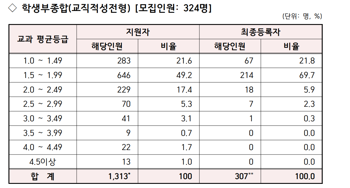 경인교대 수시, 정시 등급컷