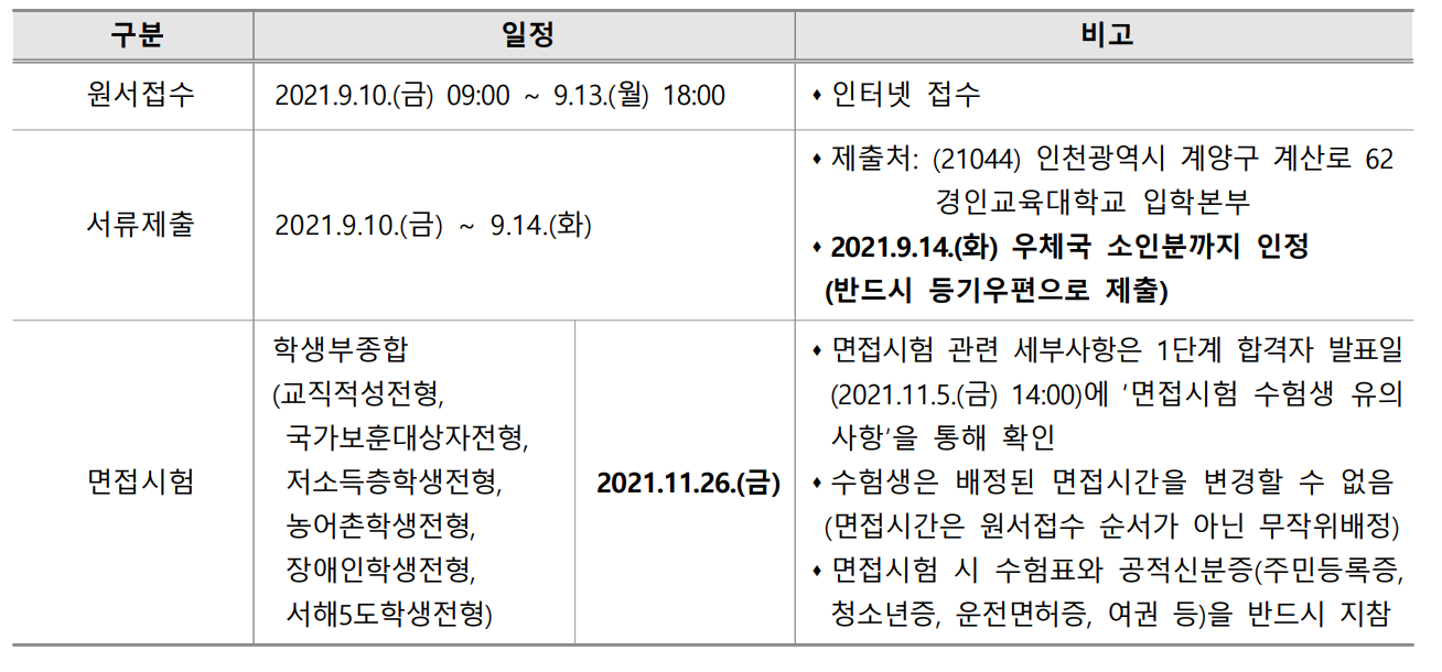 경인교대 2022학년도 입시 수시모집요강