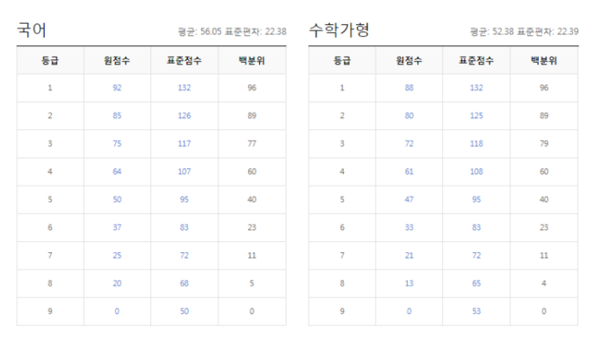 시험을 보고 나면 항상 확인해보게 되는 등급컷은 올해 시험은 조금 차이가 있을 수 있지만 그래도 참고하시면 되겠습니다.