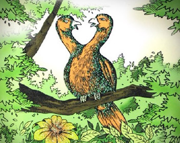 머리는 둘이라도 몸은 하나이니 비록 생각은 다를 수 있어도 몸을 지키기 위하여 서로 협력하고 지켜주어야 같이 살 수 있는 그런 존재입니다. 한 쪽 머리는 낮에 일어나 좋은 열매를 먹고 다른 머리는 밤에 일어나 그보다 떨어지는 과일을 먹었는데 이에 화가 난 밤에 일어나는 머리가 상대에게 몰래 독이 든 과일을 먹어 죽였으나 역시 같이 죽고 말았다고 합니다. 그러니 상대를 죽이면 나는 살고 혼자 모든 것을 독차지할 수 있다고 생각했지만 같이 공멸한 것이죠.