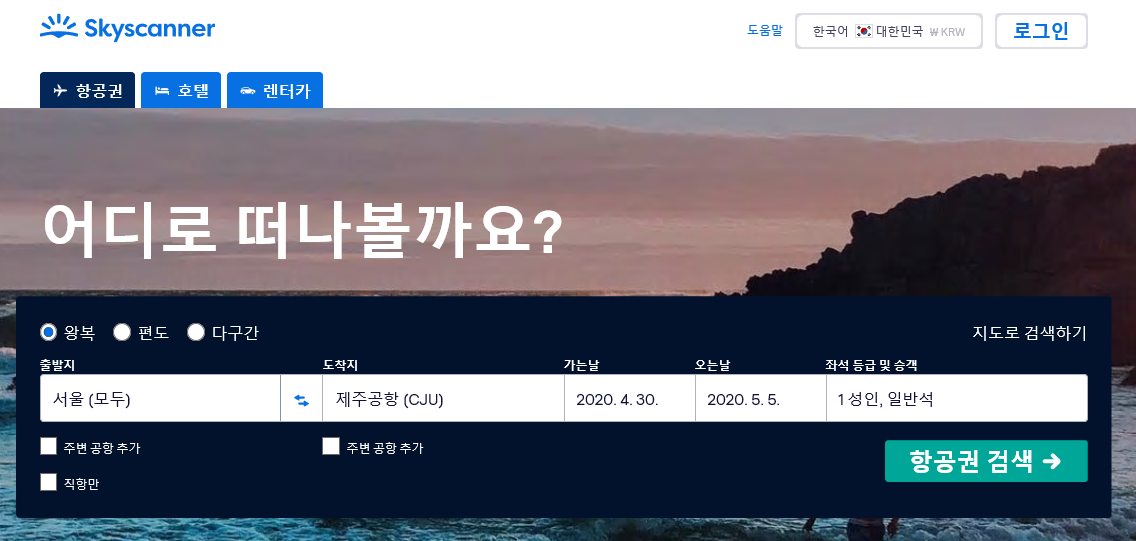 성수기에는 기본적으로 수요가 몰리다 보니 항공권 가격이 올라가게 됩니다. 수요와 공급의 원칙이 여기에도 적용되는 것입니다. 조금이라도 저렴한 운임으로 항공권 예약을 하고 싶다면 스카이스캐너(https://www.skyscanner.co.kr/)를 추천할 만 합니다. 복잡하지도 않고 단순하게 검색을 할 수 있으며 보여지는 화면도 쉽게 내용을 파악할 수 있는 장점이 있습니다.