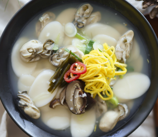 떡국은 비교적 쉽게 끓여 먹을 수 있는 음식으로 그렇게 복잡하지는 않습니다. 육수는 보통 멸치를 준비하는데 여기에 지금 제철 음식인 굴을 넣으면 더욱 맛있는 떡국을 만들 수 있습니다. 육수로 사골 육수를 이용하면 더욱 깊은 맛을 낼 수 있습니다. 굴과 떡국의 조합은 의외로 잘 어울입니다.