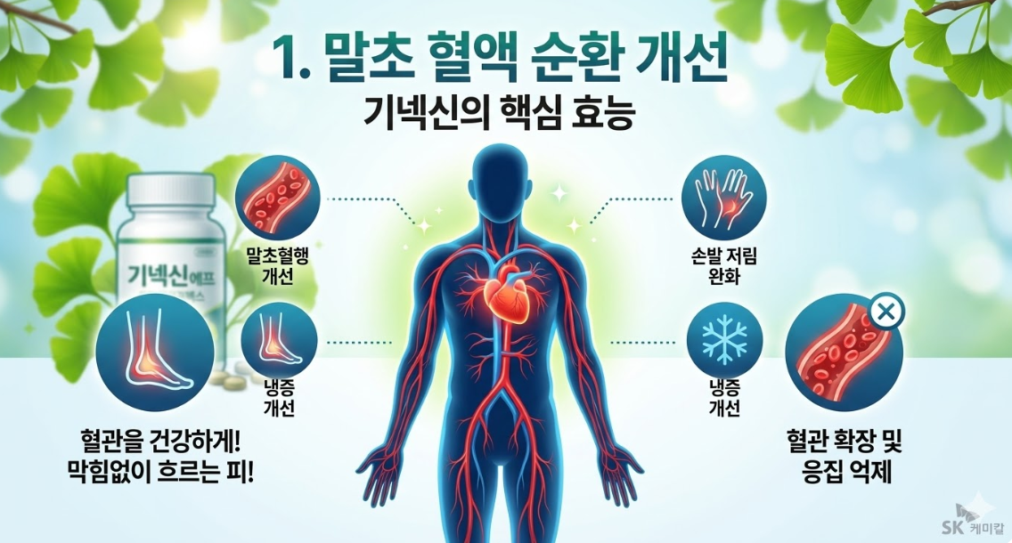 나이가 들어가면서 몸의 순환이 예전 같지 않다는 느낌을 받을 때가 많습니다. 특히 손발이 차가워지거나 방금 하려던 일이 생각나지 않아 당황스러운 경험을 하게 되면 혈액순환 영양제에 자연스럽게 관심을 갖게 됩니다. 그중에서도 SK케미칼의 '기넥신 에프'는 오랜 시간 대중의 신뢰를 받아온 제품입니다. 단순히 유명세에 의존하기보다는 이 약이 내 몸에서 어떻게 작용하는지, 그리고 어떤 점을 주의해야 하는지 명확히 알고 복용하는 것이 건강 관리의 핵심이라고 생각됩니다. 오늘은 기넥신의 구체적인 효능과 복용법, 그리고 실제 경험에서 우러나온 주의사항들을 안내해 드리겠습니다.