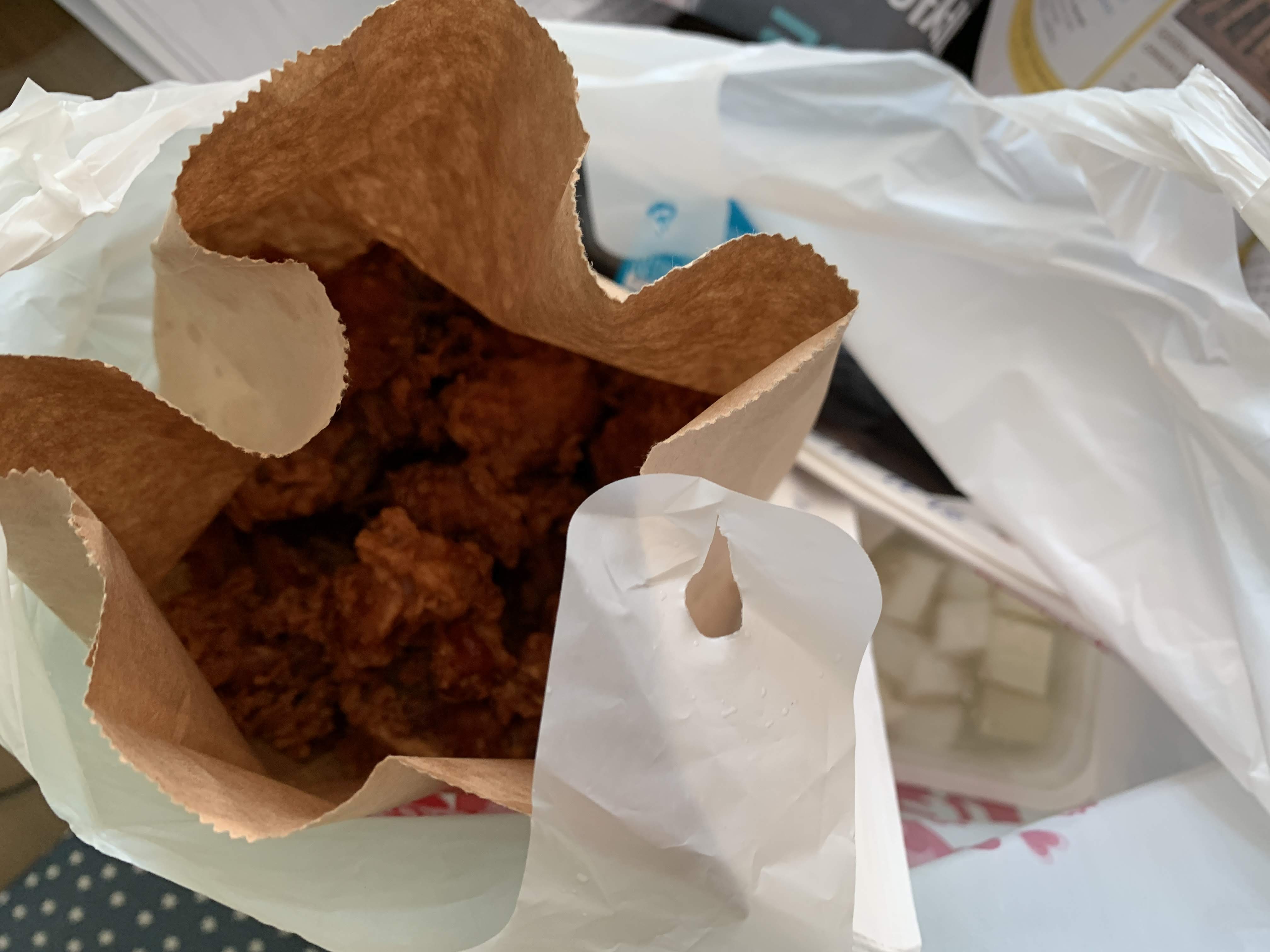 이렇게 받아 온 후라이드 치킨은 한 마리에 15,000원입니다. 양념과 반반도 있는데 각각 16,000원씩 합니다. 후라이드 치킨을 집에 가지고 와서 먹어 보니 튀김 옷 자체가 다른 듯합니다. 바삭바삭하고 간이 적당하게 밴 치킨의 맛은 지금까지 먹어봤던 그 어떤 치킨보다도 맛이 월등합니다. 약간 식은 다음에 먹어도 느끼함 없이 즐길 수 있는 맛입니다.
