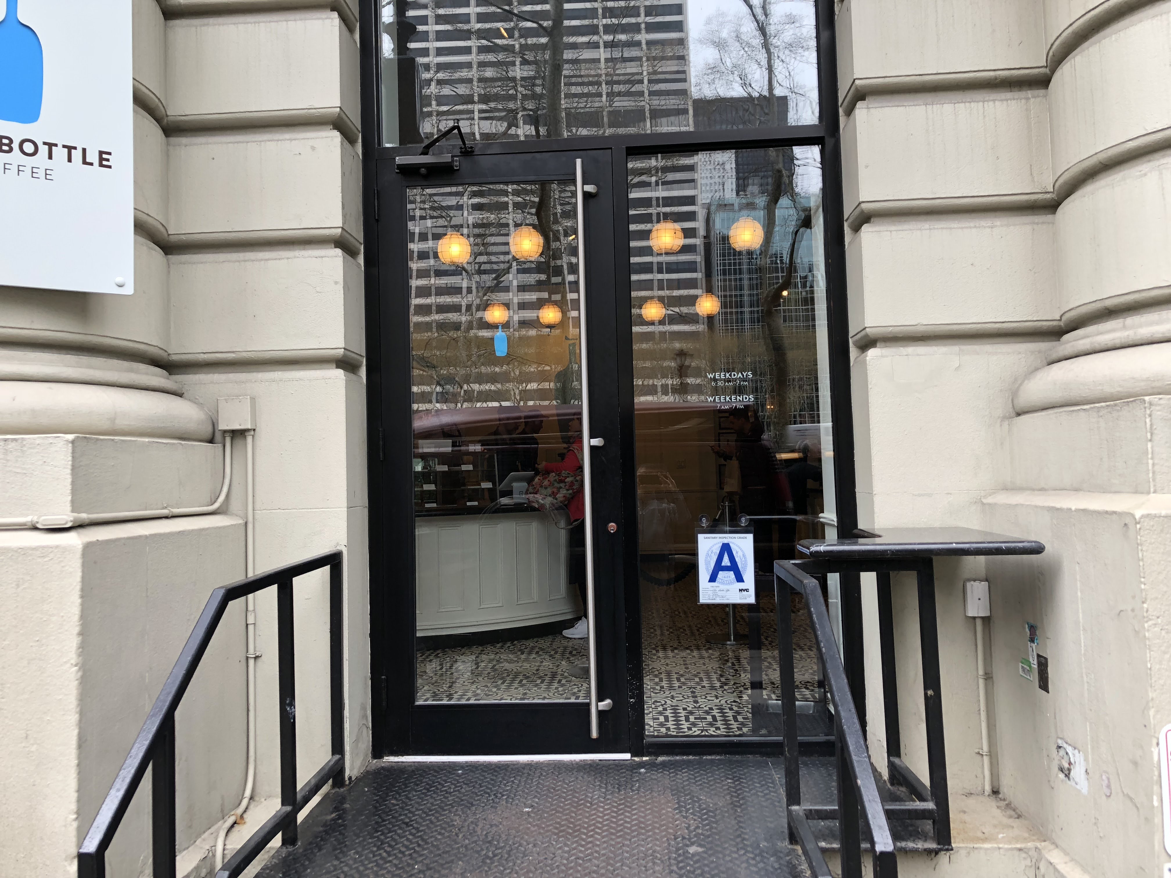 스타벅스야 워낙에 유명하니 새로운 느낌은 아니었지만 어쨌든 뉴욕에서 마시는 커피 맛은 참 좋았습니다. 그렇게 계속 걷다가 가게 된 것은 뉴욕 공립도서관이었습니다. 분위기에 세게 5대 도서관으로 뽑힐 만큼 유명한 곳이었습니다. 도서관 옆으로 가면 브라이언트 공원이라는 작은 공원이 있습니다. 여기에서 잠시 쉬어 가려는데 길가에 보이는 커피 매장이 있었으니 바로 블루보틀이었습니다.