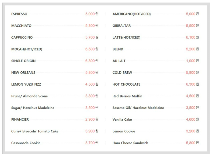 스타벅스도 그렇지만 블루보틀 커피 역시 한국에서는 다소 고가 정책으로 나가는 것 같습니다. 많이 마시는 에스프레소/아메리카노는 5,000원, 카푸치노는 5,700원, 콜드브루는 5,800원입니다.
