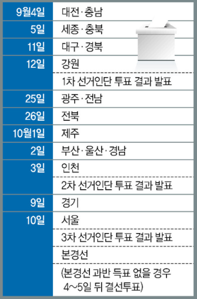현재 남아있는 경선 일정은 광주,전남 9월 25일, 전북 26일, 제주 10월 1일, 부산, 울산, 경남 10월2일, 인천 10월 3일, 경기 10월 9일, 서울 10월 10일입니다. 1차 슈퍼위크는 이미 결과가 발표되었으며 64만명 규모였습니다. 2차는 49만명 규모로 10월 3일, 3차(30만명)는 10월 10일에 발표될 예정입니다. 민주당 전국 대의원, 권리 당원, 일반 당원 등 당심과 일반 국민의 표심을 합하여 결정을 짓는 만큼 슈퍼위크 결과도 중요한 변수로 작용할 것으로 보입니다. 모두 한표로 똑같이 적용됩니다.