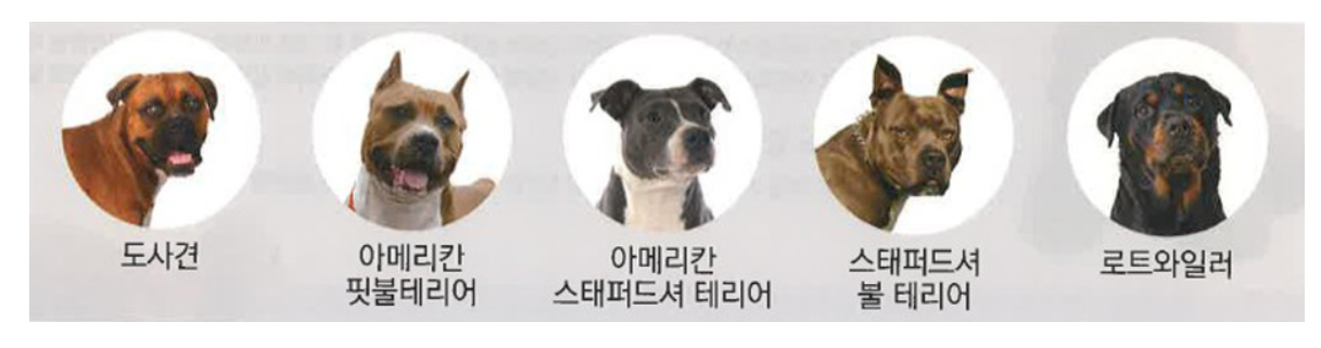 이러한 맹견들을 반려견 같이 키우고 애지중지하는 견주들의 입장에서는 사랑스럽고 충성스러운 존재이겠지만 다른 사람들에게는 공포스러운 존재입니다. 보호장치 없이 길거리를 활보하는 맹견들은 그 자체가 흉기입니다. 미국에서 벌어진 사고를 예로 들었지만 우리나라에서도 개에 물려 다치거나 심한 경우 사망에 이르게 된 사건, 사고가 간간히 보고되고 있습니다. 맹견에 대한 의무 사항이 있으나 잘 지켜지지 않고 있는 것도 이유가 될 것입니다.