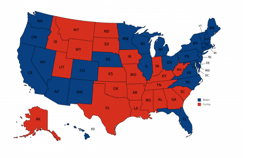 미국 대선은 직접 선거가 아닌 선거인단을 뽑는 간접 선거이며 인구 비례로 배정되어 있는 선거인단에 대한 승자독식 원칙이 있어 한 표라도 많은 표를 가져 가면 모든 표가 특정 선거인단에 몰리게 되어 있는 구조입니다. 땅덩어리가 큰 미국은 민주적인 선거가 이루어지는 가장 큰 나라인데 선거 형태는 조금 구시대적인 면을 보여주고 있습니다. 미국도 우리나라와 마찬가지로 표심이 지역에 따라 고정이 되어 있는 편이지만 스윙스테이트라 하여 표심이 변하는 지역도 있습니다.