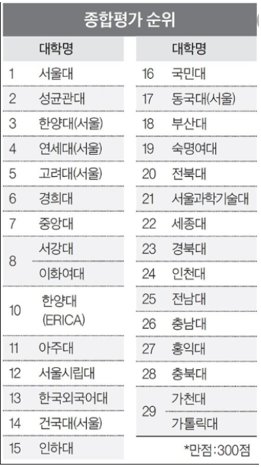 대학서열화라는 비판이 있지만 엄연히 한국 대학에 서열이 존재하고 있는 것은 부인할 수 없는 사실입니다. 평판으로 볼 때 소위 SKY 다음에 오는 서성한 레벨로 성균관대, 한양대와 견주고 있습니다. 최근 취업률은 과거보다는 조금 낮아진 것 같은데 참고로 2019년 취업률을 보면 서강대는 70.4%를 기록했고 성균관대는 77%, 한양대는 73.4%였습니다. 10위권 내에 들어가 있는 대학 중 성적이 높은 학생들이 가는 의대 없이 이 정도 레벨이니 상당히 높은 순위임을 알 수 있습니다. 참고로 10위권내에 있는 한국외대도 역시 의과대학이 없습니다. 서강대학교 평균 등록금은 2019년 기준 795만원입니다.