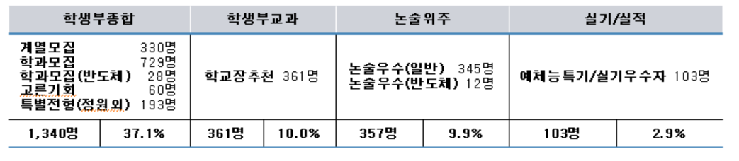 수시모집 전형별로 살펴보면 교과 위주인 학생부 교과 전형으로 172명, 학생부 종합 전형으로 647명, 논술 전형으로 169명을 선발합니다. 학생부 종합 전형은 학생부 서류 100% 반영입니다. 학생부 종합은 수능최저학력기준이 없습니다. 학생부교과와 논술 전형은 각각 수능 최저학력기준을 적용합니다. 학생부 교과 전형은 고교장 추천 전형으로 신설되었으며 고교별 10명까지 추천 가능합니다. 서강대는 자기소개서를 제출하지 않습니다.