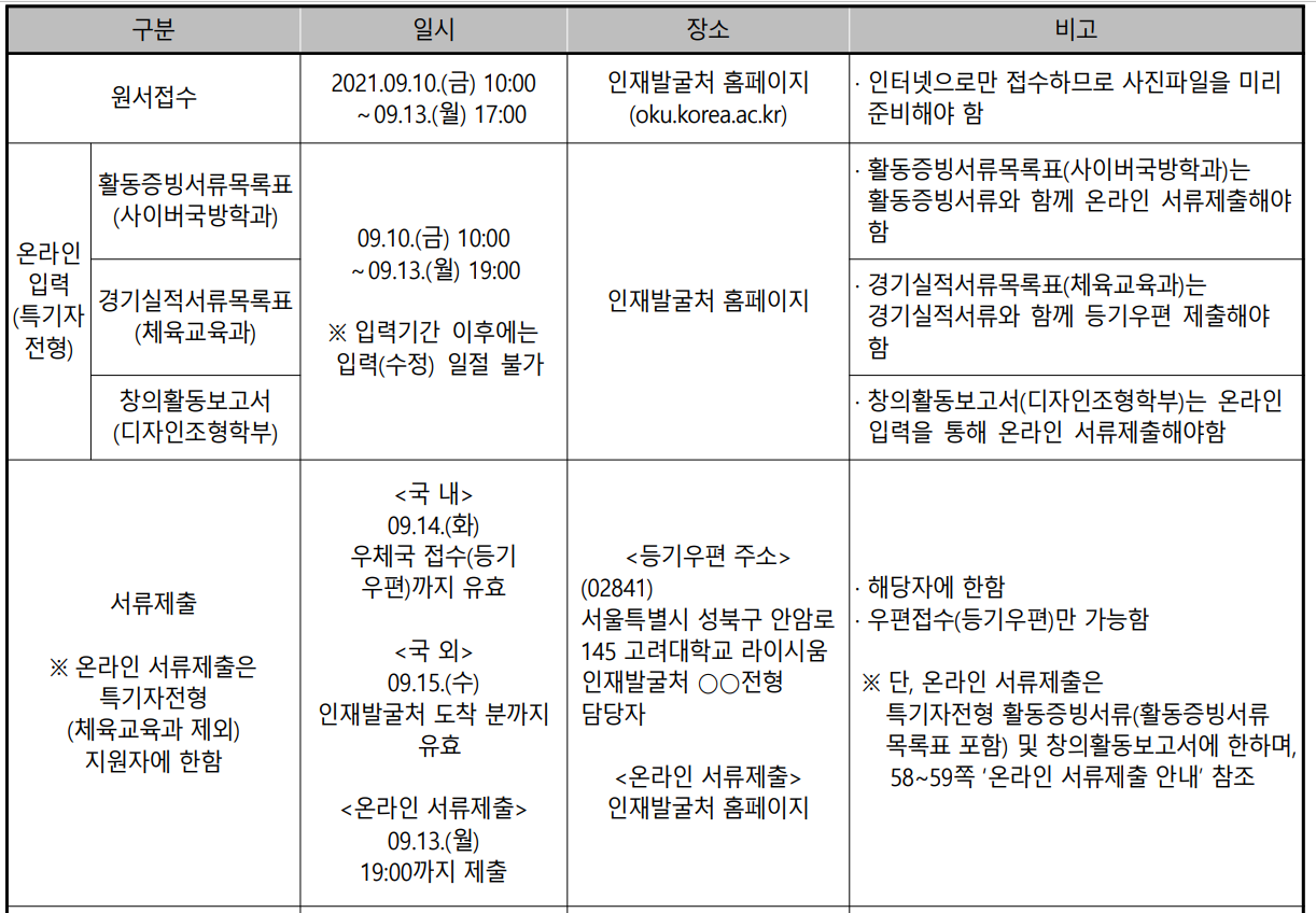 고려대는 학생부교과 전형인 학교추천 860명, 학생부종합 일반전형 학업우수형 898명, 일반전형 계열적합형 459명 등 2,450명을 선발합니다. 수시 모집 원서접수 일정은 9월 10일부터 13일까지입니다.