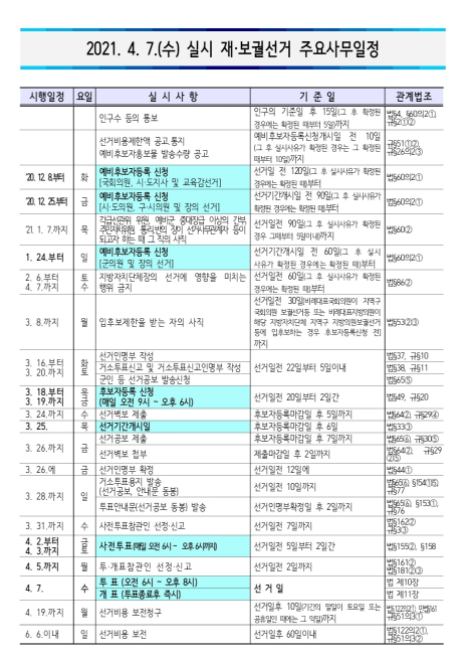 서울시장 선거일, 사전투표일 일정, 부산시장 재보궐선거일 4월 7일 휴일?