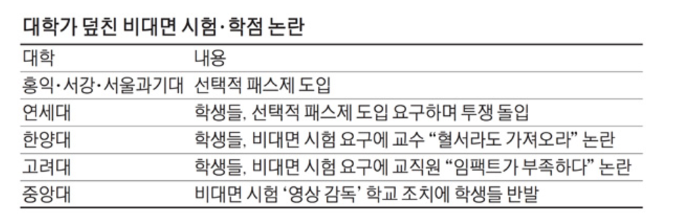 이미 1학기를 대부분 온라인 비대면 수업으로 마무리 하고 있는 대학가는 등록금 환불, 반환 문제로 진통을 겪고 있습니다. 여기에 더하여 성적 평가 방식을 놓고 역시 갈등을 겪고 있는데 선택적 패스제를 놓고 갑론을박이 이어지고 있습니다.