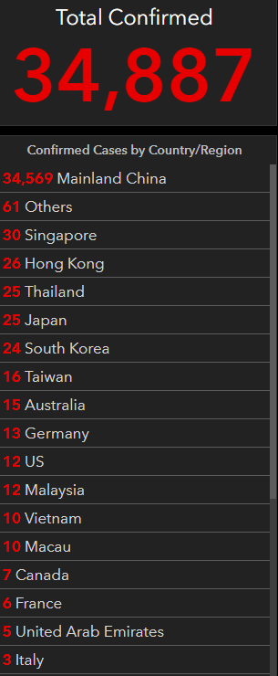 2월 8일 현재까지 세계적으로 확진자는 34,887명이며 이중 사망자는 724명, 우리나라도 24명의 확진자가 발생된 상태입니다. 중국이 압도적으로 많은 숫자로 34,569명을 기록하고 있으며 사망자도 홍콩 1명, 필리핀 1명을 제외하면 모두 중국에서 나오고 있습니다. 필리핀 사망자도 중국인이었던 것을 보면 중국인들만 사망하고 있는 것을 알 수 있습니다. 국내의 경우도 의심환자가 급증하고 잇는데 620명이 검사중이며 현재까지 유증상자는 1,106명에 달하고 있습니다. 특히 일본 크루즈에서 발생한 확진자 수만 61명에 달하고 있어 더욱 충격을 주고 있습니다. 약 3,700명이 탑승한 일본 크루즈 다이아몬드 프린세스에는 한국인만 14명이 탑승한 것으로 알려졌는데 아직까지 한국인 확진자는 없다고 합니다. 최근에 우한에서 전세기편으로 입국한 교민중에서는 2명의 확진자가 발생되었습니다.