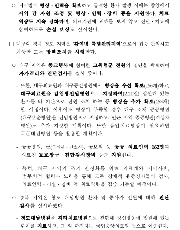 지금 현재도 확진자는 기하급수적으로 늘어나고 있으며 이에 따라 환자들을 수용할 음압병실도 모자라고 있는 상황이며 코호트 격리까지 이루어 지고 있습니다. 감염병 위기 경보 격상에 따른 조치 내용과 음압병실, 코호트 격리는 어떤 것들인지 살펴 보도록 하겠습니다.