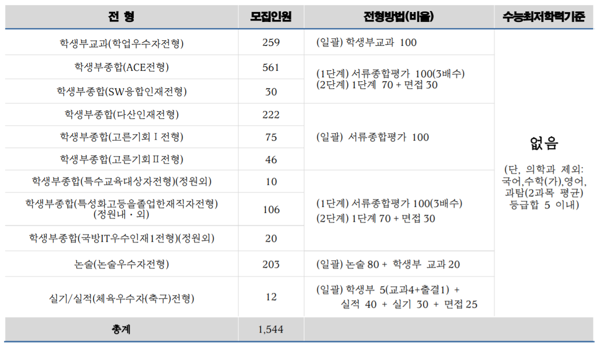 아주대 수시모집 전형