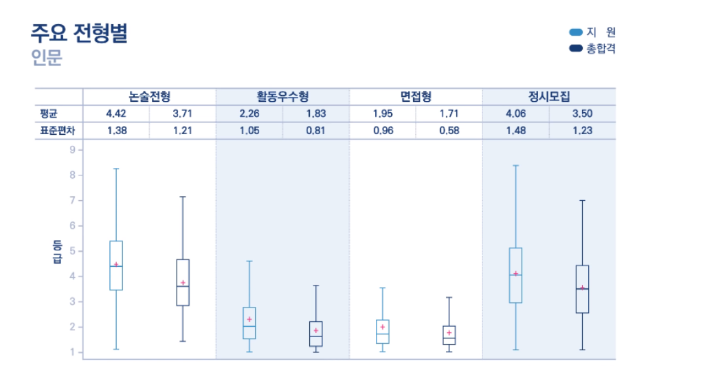 전체 수시 기준으로 보면 인문계는 최종 등록자 기준 2.46, 자연계는 2.93으로 나타났습니다. 인문계 논술전형은 3.71, 자연계는 3.48이었습니다. 내신이 다소 불리해도 논술을 잘 본다면 3등급에서도 합격을 할 수 있는데 2021에는 모집 인원이 대폭 줄어든 만큼 더욱 어려운 경쟁이 될 것으로 보입니다. 참고로 정시모집으로 합격한 학생들의 내신등급도 3등급대인데 수능에 정말 자신이 있다면 역시 도전해 볼만 하겠습니다.