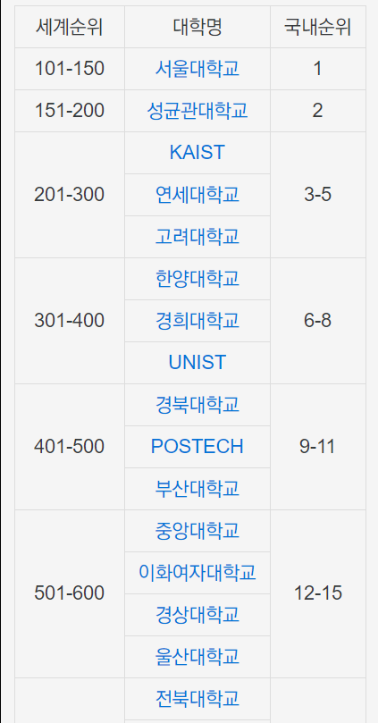 QS, THE, ARWU 등의 대학평가는 3대 평가라고 하여 신뢰도가 비교적 높은 편입니다. 2020 기준 QS 평가로는 국제 85위, 국내 5위, THE 평가는 세계 197위, 국내 6위, ARWU에서는 국제 201~300위 그룹, 국내 5위를 기록했습니다. ARWU평가에서는 근소하게 고려대를 제쳤습니다. 세계 평가기관들이 매기는 평가에서는 6개 대학, 서울대, 고려대, 연세대, KAIST, 포스텍, 성균관대가 꾸준히 들어가고 있으며 간혹 한양대학교가 들어가기도 합니다. 앞으로도 큰 이변이 없는 한 이 순위는 변동이 없을 것 같습니다. 다만 연세대는 최근 교육부 감사에서 드러난 부실한 학사관리와 편법 사례 같은 부정적인 소식도 있었는데 대학의 명성에 누가 가지 않도록 철저한 관리가 필요하겠습니다.