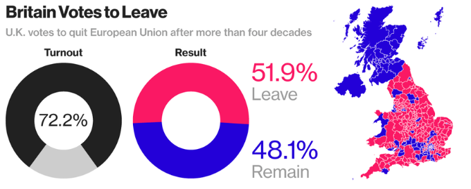 브렉시트(BREXIT)는 말 그대로 영국이 EU, 즉 유럽연합으로부터 탈퇴하겠다는 것인데 왜 영국이 EU로부터 나가려고 하는지 그 이유에 대하여 알아두는 것이 좋겠습니다. 영국 Britain과 탈퇴 EXIT를 조합하여 만든 말로 EU에서의 탈퇴를 의미합니다. 2016년 6월 23일 EU 잔류 여부에 대한 찬반 국민투표를 실시하였으며 그 결과 찬성이 52%로 가결되어 탈퇴 과정이 진행되고 있는 것입니다.