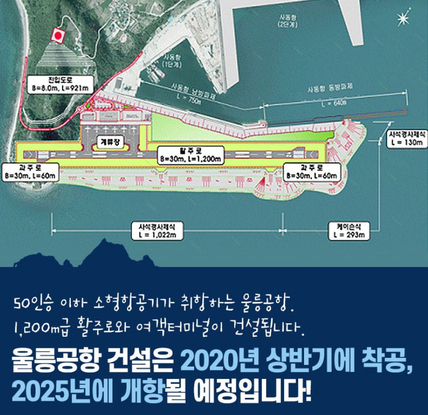 오랜 세월 육지와 단절되어 있던 동해의 섬 울릉도에 공항이 생기는 것은 획기적인 소식이 아닐 수 없습니다. 아무쪼록 차질없이 건설이 진행되어 우리의 섬 울릉도, 독도에 더 빨리 가깝게 갈 수 있기를 바랍니다.