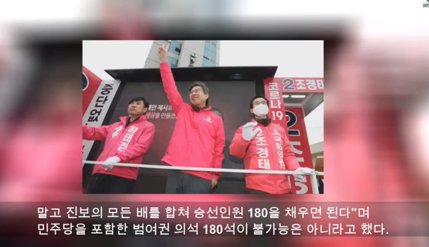 유 이사장은 180석 발언이 이렇게 선가 말미에 변수, 쟁점으로 떠오르면서 당혹한 기색이었던 것 같습니다. 180석 발언 내용은 사실이 아니며, 사실을 왜곡한 것이다, 그러나 민주당에서 비판하는 내용은 감수하겠다며 역시 해명을 했습니다. 그러면서 보수 세력에 빌미를 준 것은 현명하지 못했다고도 했습니다.