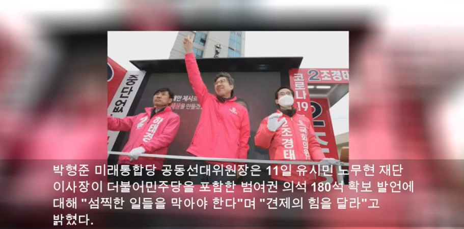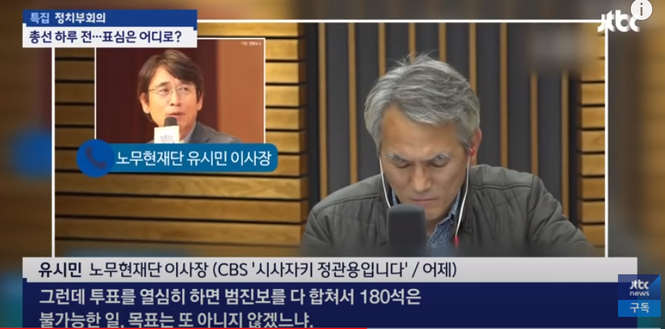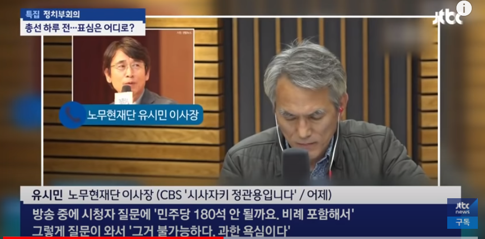 유 이사장은 180석 발언이 이렇게 선가 말미에 변수, 쟁점으로 떠오르면서 당혹한 기색이었던 것 같습니다. 180석 발언 내용은 사실이 아니며, 사실을 왜곡한 것이다, 그러나 민주당에서 비판하는 내용은 감수하겠다며 역시 해명을 했습니다. 그러면서 보수 세력에 빌미를 준 것은 현명하지 못했다고도 했습니다.