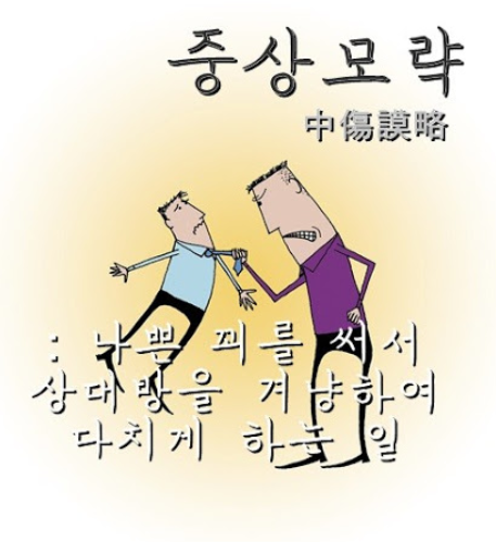 중상모략(中傷謀略)은 터무니없이 다른 사람을 헐뜯고(중상), 간사하게 속이며 술수를 부리려는 행동(모략)의 의미입니다. 사실이 아닌 거짓임에도 불구하고 누군가를 곤경에 처하게 하기 위하여 일부러 모함하고 죄를 뒤집어 씌워 불이익을 주고자 하는 행위나 발언에 대한 사자 성어입니다.