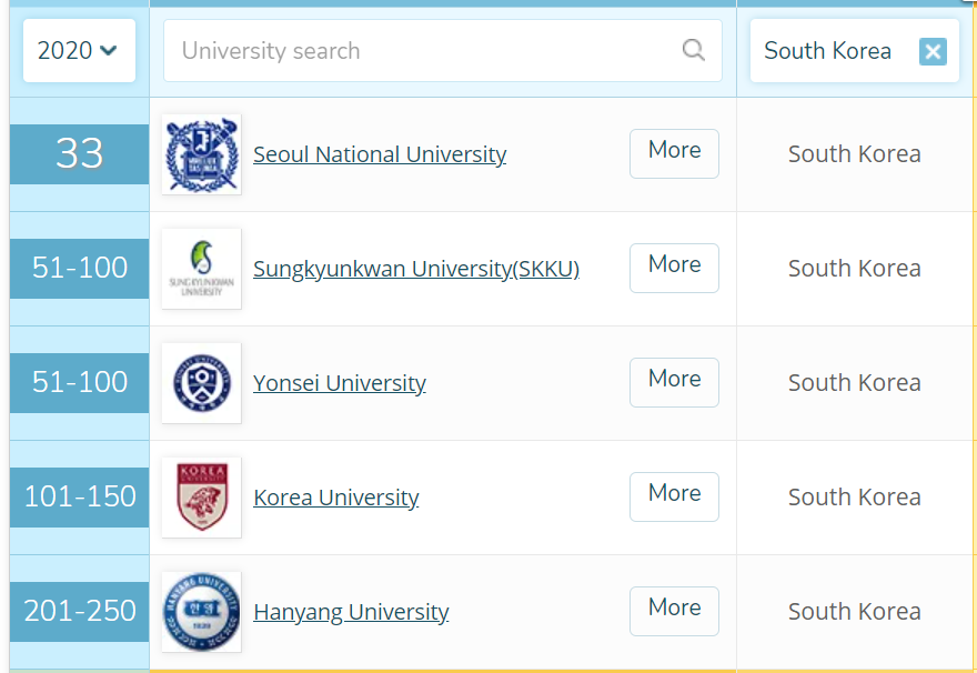 2008년을 끝으로 수능 성적으로 신입생을 선발하지 않았기에 최근 수능성적에 근거한 대학 순위는 정하는 것이 의미는 없을 것 같습니다. 그러나 평판도와 QS 세계 대학 평가 등으로 대학 순위를 유추해 볼 수 있습니다.