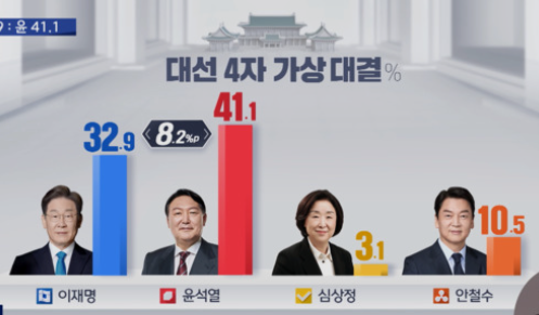 한국갤럽은 매주 단위로 여론조사를 실시하여 발표하고 있습니다. 1월 4주차 여론조사는 1월 25일부터 27일까지 실시되었습니다. 전화 조사원 인터뷰 방식으로 18세이상 남녀 1천명 대상, 응답률은 15.1%입니다. 대선후보 지지도에서 이재명 35%, 윤석열 35%로 동률을 기록했으며 안철수 15%, 심상정 4%로 기록되었습니다. 직전 조사에서는 이재명 34%, 윤석열 33%, 안철수 17%였습니다. 갤럽 조사 결과를 보면 박빙의 양상으로 보이며 응답율이 낮은 오차 범위내 윤석열 후보 10%이상 우위로 나오는 조사 결과와는 차이가 있음을 알 수 있습니다. 다만 MBC가 의뢰하여 코리아리서치인터내셔널에서 1월26일~27일 실시한 조사에서는 이재명 32.9%, 윤석열 41.1%, 안철수 10.5%였으며 응답율은 17.0%로 나타나 갤럽 조사내용과 차이가 나고 있습니다. 어떤 여론이 더 정확한 민심을 반영했는지는 알 수 없으나 윤석열 후보의 지지율이 본부장 리스크에도 불구하고 상승세에 있는 것은 부인하기 어려운 것으로 보입니다.