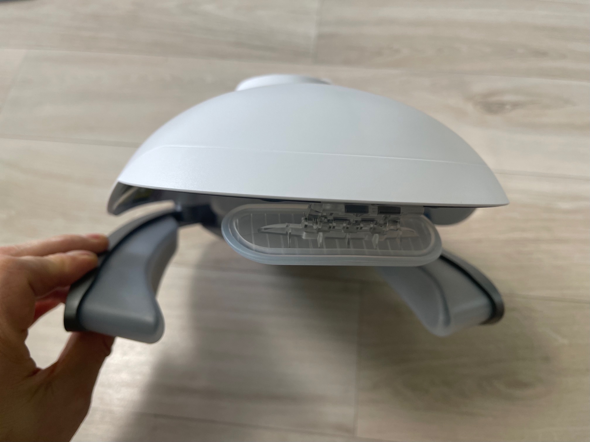 사용 방법은 앞에서 본 것처럼 매우 간단합니다. 탈모 유형을 보니 다 해당되는 것 같기도 하지만 가장 가까운 유형의 탈모 유형을 선택하여 머리에 착용하면 됩니다. 선택할 때는 스위치를 누르면 원하는 모드로 이동하고 확인이 되면 바로 착용하고 가만히 있으면 됩니다. 생긴 모습은 자전거 헬멧 같이 생겼으며 무게도 가벼워 무게감이 쓰고 있어도 느껴지지 않을 정도입니다. 머리에 착용하면 빨간 불빛이 들어오고 거울로 보니 레이저 광선 같은 것이 내리쬐는 것 같이 보입니다. 이 광선은 벗으면 활성화되지는 않습니다.