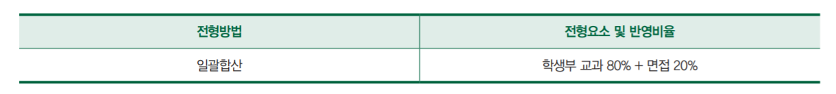 이화여대 학생부교과 전형부터 살펴 보겠습니다. 이대 학생부 교과는 상위권 대학답게 고교 추천전형 방식으로 뽑습니다. 지원자격은 2021년 2월 졸업 예정인 현 고3생과 2020년 2월 이후 졸업한 수험생까지입니다. 인문계, 자연계 구분 없이 학교당 추천인원은 5명까지입니다. 반영 기준은 학생부 교과가 80%로 매우 높으며 면접은 20% 비율입니다. 수능 최저학력 기준은 적용하지 않습니다. 교과 반영 과목은 국어, 영어, 수학, 한국사, 사회, 과학 과목입니다.