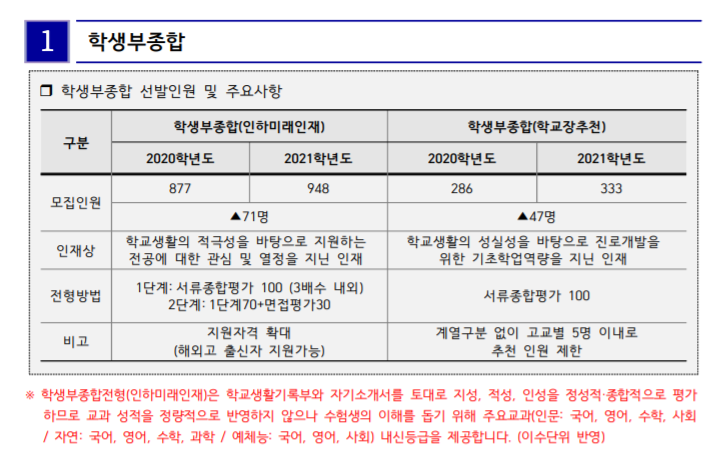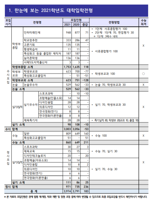 이상과 같이 수시 대비 인하대학교 2020년 전형 결과와 2021학년도 수시전형 정보에 대하여 일아 보았습니다. 준비에 도움이 되시기 바라겠습니다.