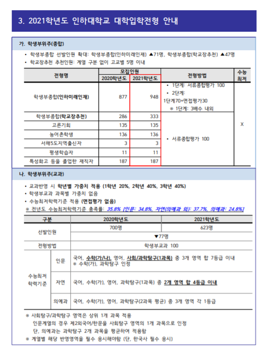 이상과 같이 수시 대비 인하대학교 2020년 전형 결과와 2021학년도 수시전형 정보에 대하여 일아 보았습니다. 준비에 도움이 되시기 바라겠습니다.