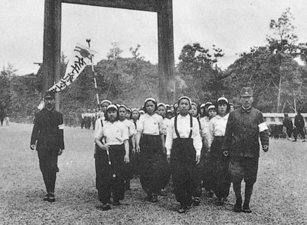 위안부로 끌려가기전 신사참배를 강요당하는 여성들