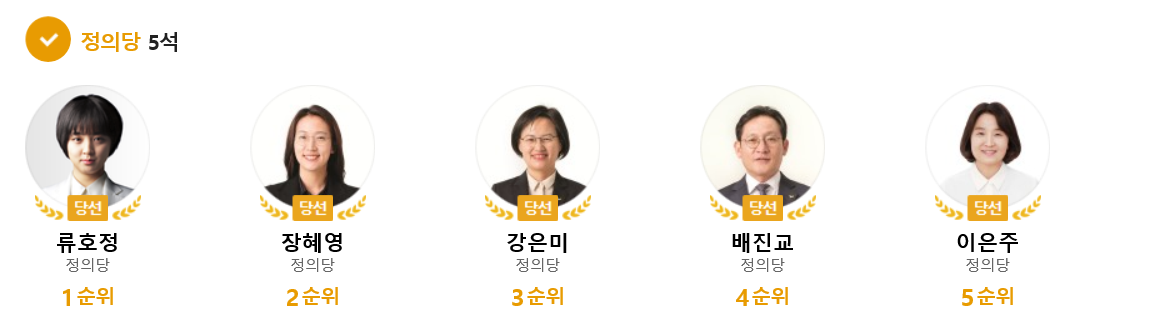 정의당 비례대표 당선자 5명