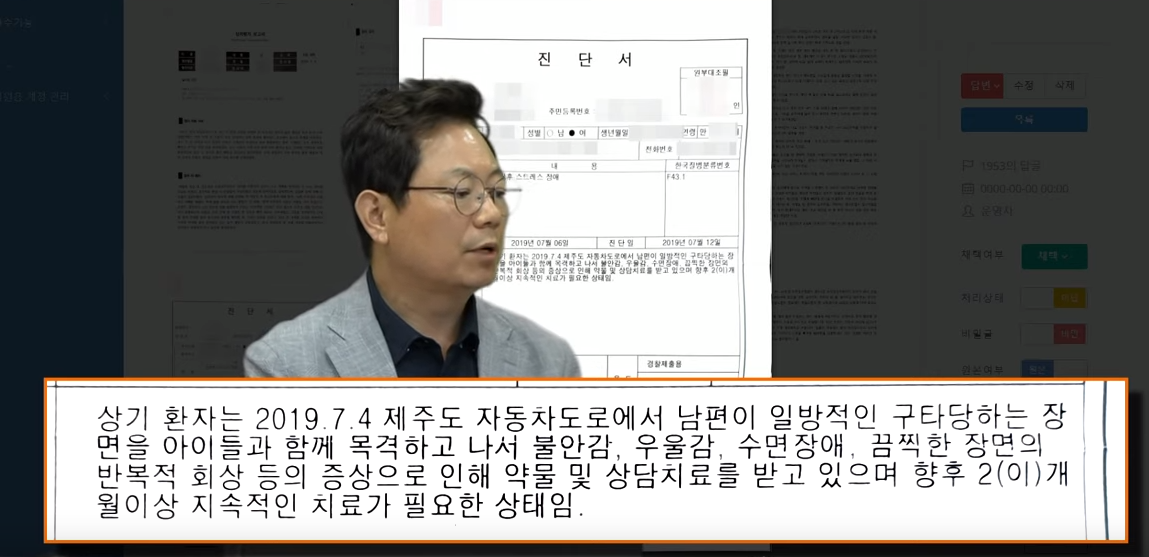 피해 차량에는 운전자와 그의 아내 그리고 8살, 5살인 자녀도 있었으며 아버지이며 남편인 운전자가 폭행당하는 모습을 그대로 볼 수밖에 없었던 상황입니다. 당연히 엄청난 공포와 정신적인 충격이 대단했을 것 같습니다. 소식에 따르면 이 현장 장면을 목격한 충격의 여파로 가족들은 심리 치료를 받았으며 피해자도 2주 상해 진단을 받았다고 합니다. 치료도 치료지만 당시에 받았을 정신적인 충격은 정말 엄청났을 것으로 짐작됩니다. 어쩌면 평생 갈지도 모를 트라우마가 생겼을 테니 말입니다. 피해자 가족은 제주도로 가족 여행을 와서 렌트 차량으로 운전하던 중 이런 봉변을 당했다고 합니다.