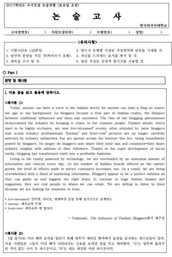 한국외대 인문 논술