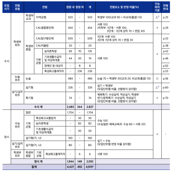 2025/2026 중앙대, 경희대 수시등급컷, 수시모집 정보