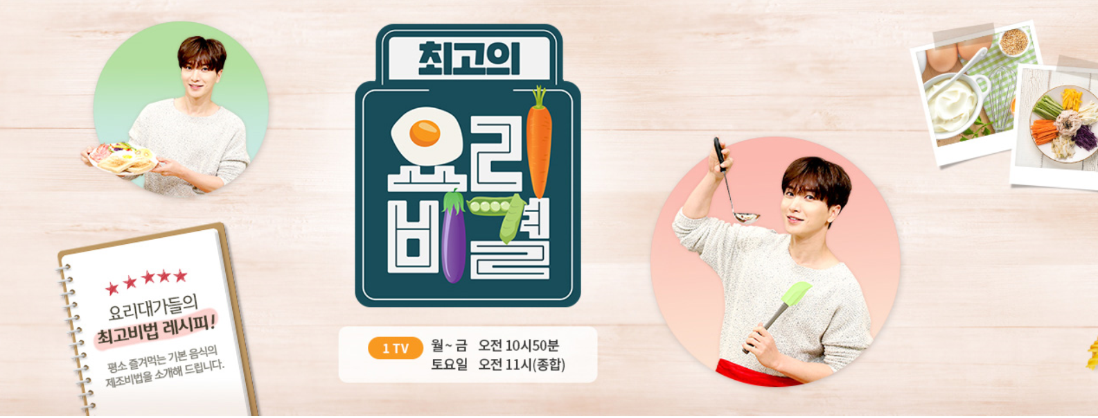 EBS에서 방송중인 많은 교양 프로그램 중 하나인 요리 프로그램 최고의 요리비결(이하 최요비)에서는 다양한 방식의 요리를 소개하며 새로운 레시피들을 선보이고 있습니다. 방송인 이특이 진행하며 더욱 친숙함을 주고 있는 프로그램으로 알려져 있습니다. 매주 월요일부터 금요일까지 오전 10시 50분에 본방송을 하고 있으며 11시 20분까지 30분간 방송이 진행되고 있습니다. 재방송은 토요일과 일요일 오후 12시부터 14시 30분까지 한주간 진행되었던 내용을 종합적으로 편성하여 내보내고 있습니다.