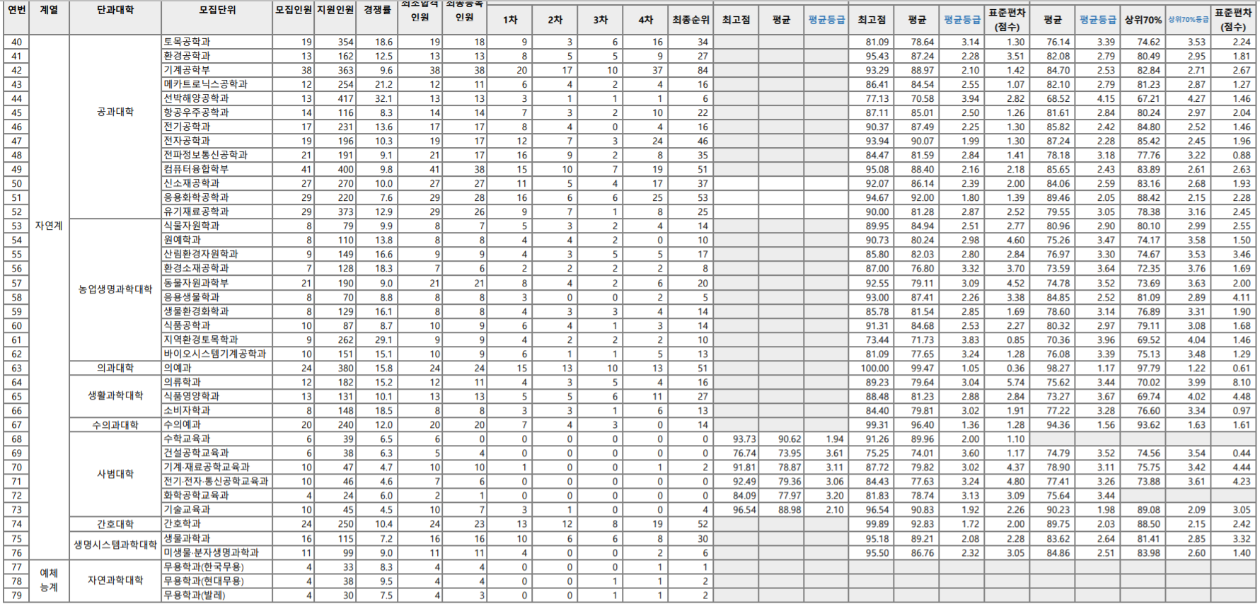 충남대 수시등급, 입시결과