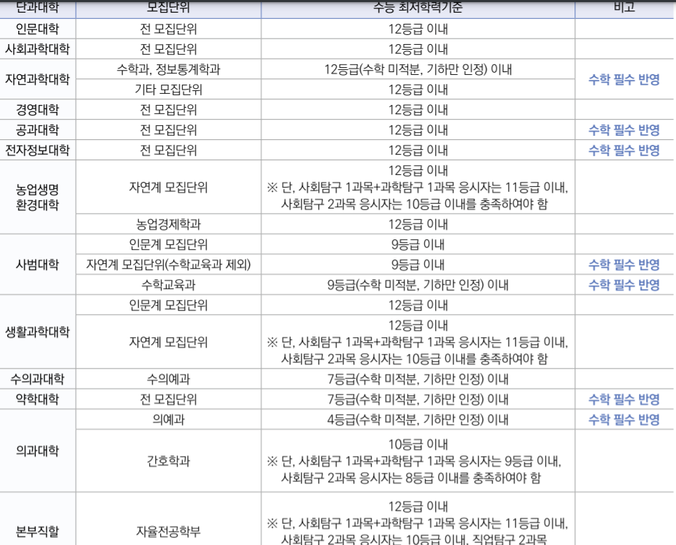 전북대 수시전형, 수시등급