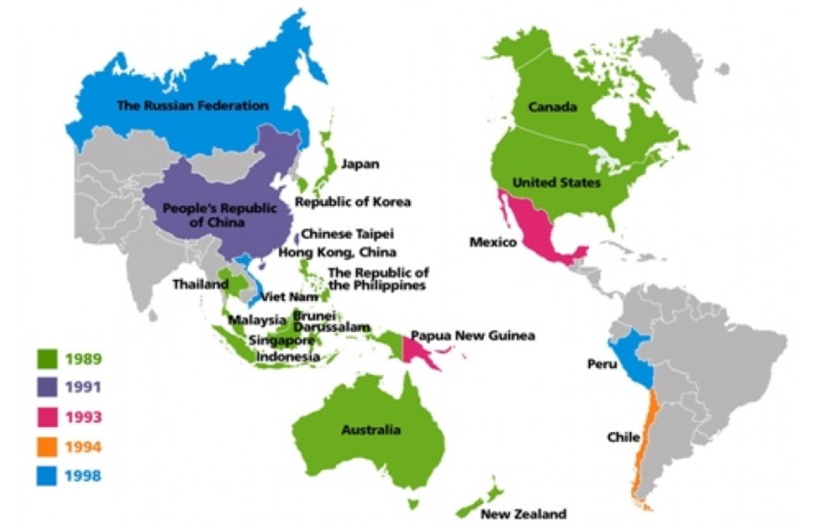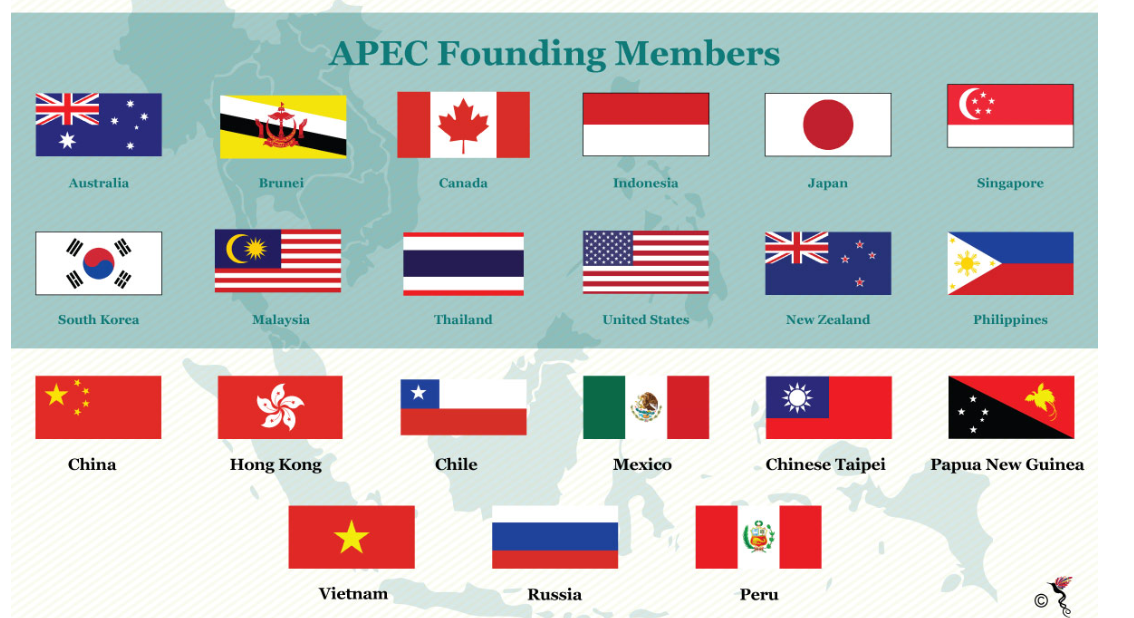 APEC은 Asia Pacific Economic Cooperation의 준말로 아펙으로 줄여서 부르고 있습니다. APEC은 태평양을 중심으로 대한민국과 아시아 지역의 주요 국가들과 미국, 캐나다, 일부 남미 국가, 호주 등이 회원국으로 가입되어 있습니다. 1989년 호주 캔버라에서 출범하였으며 아시아 태평양 지역의 지속적인 경제성장과 공동의 번영을 추구하는 것을 모토로 시작되었습니다. 회원국은 현재 총 21개국입니다. 최초 창설시 가입국은 대한민국, 미국, 일본, 캐나다, 호주, 뉴질랜드, 태국, 말레이시아, 인도네시아, 싱가포르, 필리핀, 브루나이 등 12개국이었습니다.